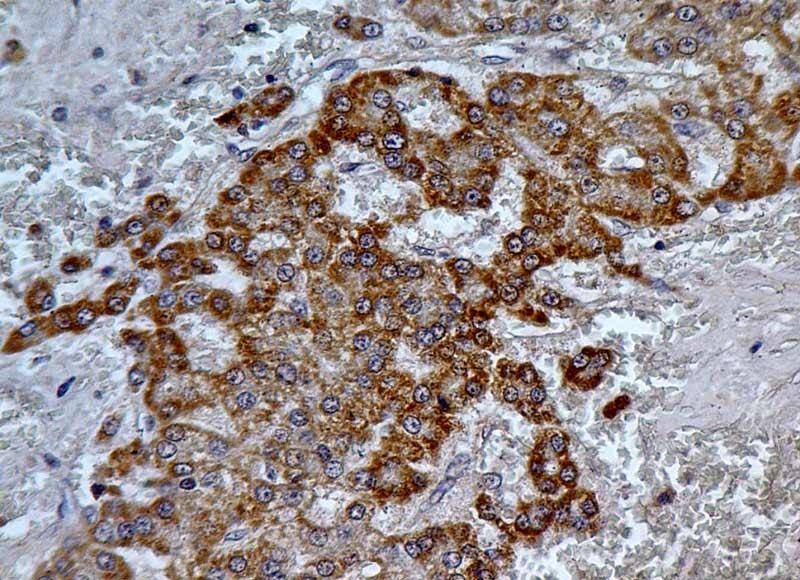 Figure-1: Immunohistochemical analysis of PDL2 in Hepatocellular carcinoma tissue using PDL2 antibody (Clone: ABM3D6.1G2) at 5 µg/ml.