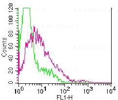 Figure 1: Cell surface staining of rat splenocytes. Green represents FITC conjugated isotope control. Red represents FITC conjugated Anti-rat CD43 antibody. 0.2 µg antibody was used.