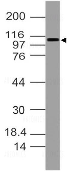 Figure-1: Western blot analysis of RB-1. Anti-RB-1 antibody (Clone: ABM17H9) was tested at 4 µg/ml on HeLa cell lysate.