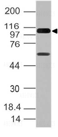 Fig-1: Western blot analysis of RIG1/DDx58. Anti-RIG1/DDx58 antibody (Clone: ABM4H29) was tested at 2 µg/ml on human kidney lysate.