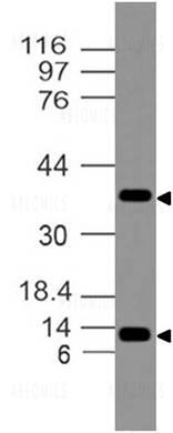 Fig:1- Expression analysis of S100A7/Psoriasin. Anti-S100A7 antibody (Clone: ABM18A5 ) was tested at 2 µg/ml on BT-474 lysate.
