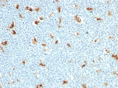 Formalin-fixed, paraffin-embedded human Tonsil stained with S100A9 Monoclonal Antibody (S100A9/1011)