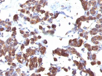 Flow Cytometry (0.5-1.0ug/million cells); Immunohistochemistry (Formalin-fixed) (0.1-0.2ug/ml for 30 min at RT) (Staining of formalin-fixed tissues requires heating tissue sections in 10mM Tris with 1mM EDTA, pH 9.0, for 45 min at 95°C followed by cooling at RT for 20 minutes);
