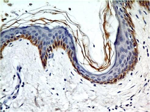 Fig-1 : Immunohistochemical analysis of TLR5 in human skin tissue using TLR5 antibody (Clone: ABM22G1) at 10 µg/ml.