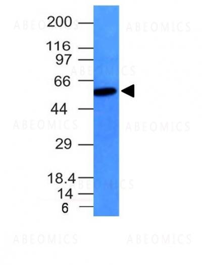 Western Blot of Raji Cell Lysateusing Vimentin Monoclonal Antibody (VM452)