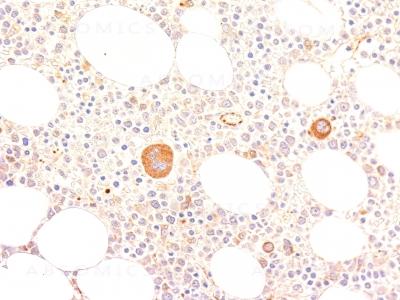 Formalin-fixed, paraffin-embedded human Bone Marrow stained with vWF Monoclonal Antibody (VWF635)