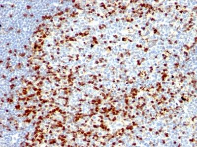 Formalin-fixed, paraffin-embedded human Tonsil stained with ZAP70 Monoclonal Antibody (ZAP70/528 + 2F3.2).