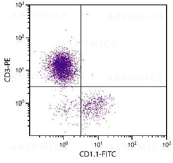 Figure 1: Chicken peripheral blood mononuclear cells were stained with Mouse Anti-Chicken CD1.1-FITC and Mouse Anti-Chicken CD3-PE .