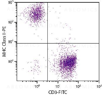 Figure 1: Chicken peripheral blood mononuclear cells were stained with Mouse Anti-Chicken MHC Class II-PE and Mouse Anti-Chicken CD3-FITC .