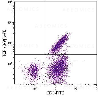 Figure 1: Chicken peripheral blood mononuclear cells were stained with Mouse Anti-Chicken TCRαβ/Vβ2-PE and Mouse Anti-Chicken CD3-FITC .