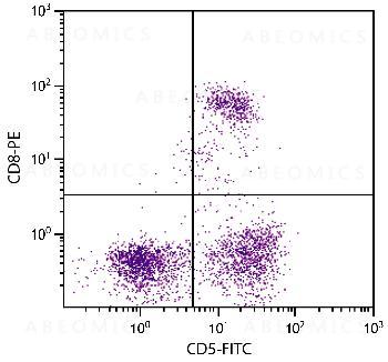 Figure 1: Feline peripheral blood lymphocytes were stained with Mouse Anti-Feline CD5-FITC and Mouse Anti-Feline CD8-PE .