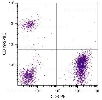 Figure 1: Human peripheral blood lymphocytes were stained with Mouse Anti-Human CD19-SPRD and Mouse Anti-Human CD3-PE .
