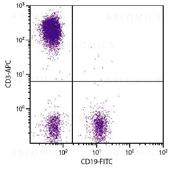 Figure 1: Human peripheral blood lymphocytes were stained with Mouse Anti-Human CD3-APC and Mouse Anti-Human CD19-FITC .