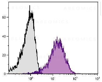 Figure 1: Human peripheral blood platelets were stained with Mouse Anti-Human CD36-FITC . Purple: CD36- FITC, Gray: FITC conjugated Isotype control.