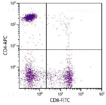 Figure 1: Human peripheral blood lymphocytes were stained with Mouse Anti-Human CD4-APC and Mouse Anti-Human CD8-FITC .
