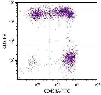 Figure 1: Human peripheral blood lymphocytes were stained with Mouse Anti-Human CD45RA-FITC and Mouse Anti-Human CD3-PE .