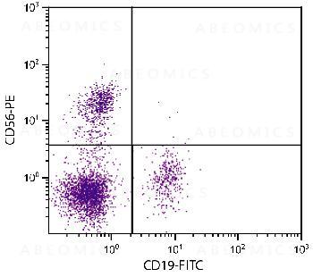 Figure 1: Human peripheral blood lymphocytes were stained with Mouse Anti-Human CD56-PE and Mouse Anti-Human CD19-FITC .