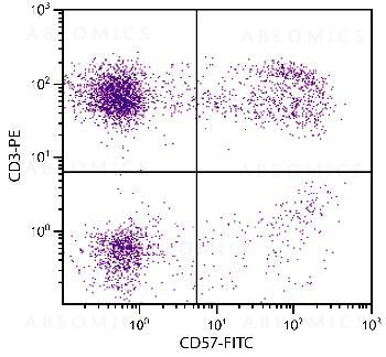 Figure 1: Human peripheral blood lymphocytes were stained with Mouse Anti-Human CD57-FITC and Mouse Anti-Human CD3-PE .