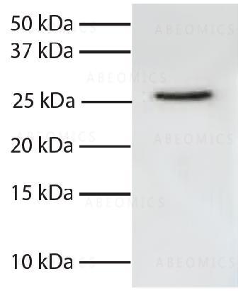 Figure 1: Total cell lysates from Jurkat cells were resolved by electrophoresis, transferred to PVDF membrane, and probed with Mouse Anti-Human FADD . Proteins were visualized using Goat Anti-Mouse IgG, Human ads-HRP secondary antibody and chemiluminescent detection.