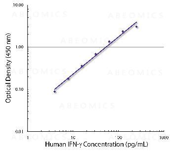 Figure 1: Standard curve generated with Mouse Anti-Human IFN-γ and Mouse Anti-Human IFN-γ-Biotin followed by Streptavidin-HRP