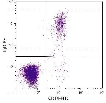 Figure 1: Human blood peripheral lymphocytes were stained with Mouse Anti-Human IgD-PE and Mouse Anti-Human CD19-FITC .