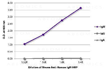 Figure 1: ELISA plate was coated with purified human IgM, IgG, and IgA. Immunoglobulins were detected with serially diluted Mouse Anti-Human IgM-HRP .