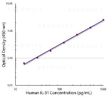 Figure 1: Standard curve generated with Mouse Anti-Human IL-31 and Mouse Anti-Human IL-31-Biotin followed by Mouse Anti-Biotin-HRP