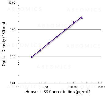 Figure 1: Standard curve generated with Mouse Anti-Human IL-33 and Mouse Anti-Human IL-33-Biotin followed by Streptavidin-HRP