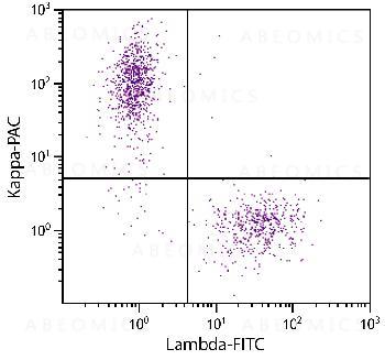 Figure 1: CD19 positive human blood peripheral lymphocytes were stained with Mouse Anti-Human Kappa-APC and Goat F(ab’)2 Anti-Human Lambda, Mouse ads-FITC .