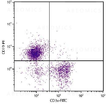 Figure 1: C57BL/6 mouse splenocytes were stained with Mouse Anti-Mouse CD19-PE and Rat Anti-Mouse CD3ε-FITC .