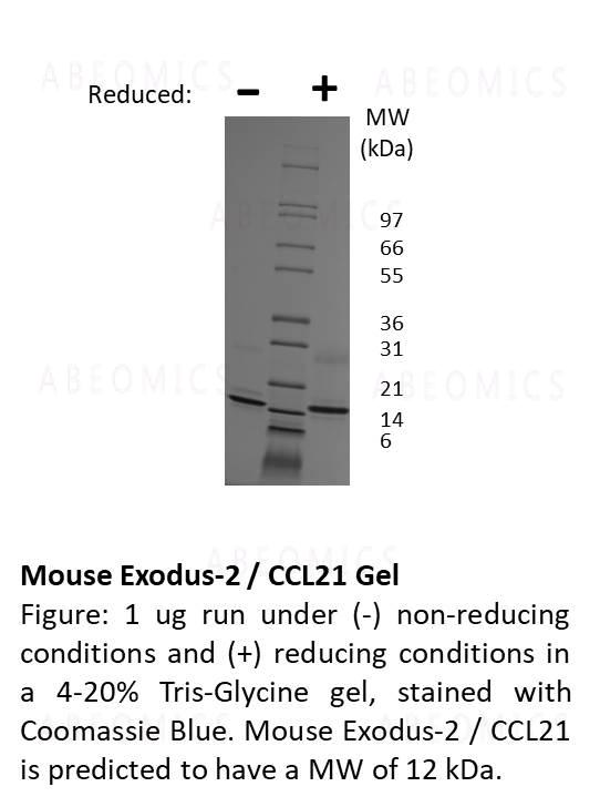 Exodus-2, also known as CCL21 and 6Ckine, is a chemokine that is strongly produced in the human lymph nodes and spleen. Exodus-2 signals through the chemokine receptor CCR7 to regulate thymocyte and activated T cell migration. Exodus-2 also mediates the homing of lymphocytes to the lymphatic system. Human and mouse Exodus-2 proteins share greater than 85% amino acid sequence identity.