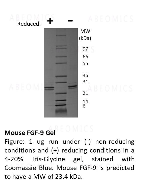 . Fibroblast growth factor 9 (FGF-9) is a mitogen and survival factor for nerve and mesenchymal cells. FGF-9 functions as an autocrine and paracrine factor to support the growth and survival of motor neurons and prostate tissue. FGF-9 expression in the gonad is also necessary for sex determination.