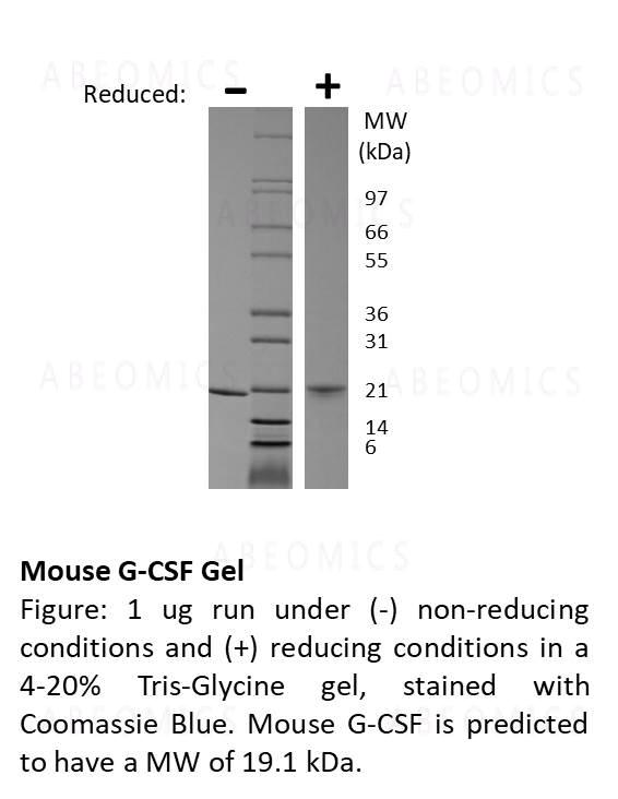 Granulocyte-colony stimulating factor (G-CSF) is a cytokine that functions as a potent inducer of neutrophilic granulocyte proliferation, terminal differentiation, and activation. G-CSF synthesis occurs in monocyte, macrophage, epithelial, endothelial, and fibroblast cells after activation by bacterial endotoxins, tumor necrosis factor alpha (TNFalpha), interleukin 1 (IL-1), or interleukin 17 (IL-17). The functional activity of G-CSF is mediated through the granulocyte colony-stimulating factor receptor (G-CSF-R) to activate JAK/STAT and MAPK signal transduction pathways. G-CSF also promotes neurogenesis and inhibits neuronal apoptosis. Human and mouse G-CSF proteins are cross-reactive.