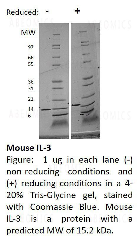 Interleukin 3 (IL-3) is a cytokine that is produced by activated T cells and mast cells. IL-3 induces the differentiation of hematopoietic stem cells into myeloid precursor cells, such as erythrocyte, megakaryocyte, granulocyte, monocyte, and dendritic cells. IL-3 also functions in the nervous system and is important during the B-1 cell regulation of chronic inflammatory diseases.