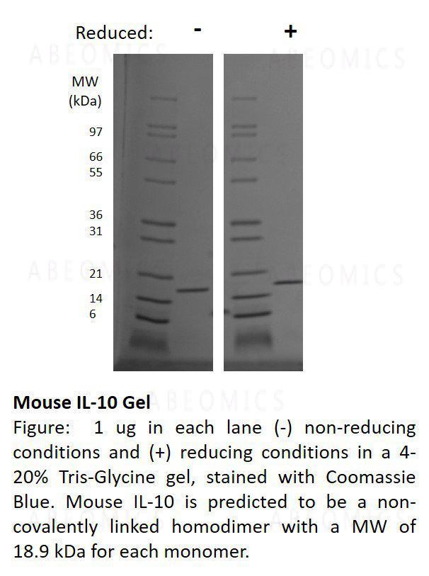 Interleukin 10 (IL-10) is an anti-inflammatory cytokine produced by macrophages and type 2 T helper (Th2) cells. IL-10 inhibits the production of pro-inflammatory cytokines such as interferon gamma (IFNgamma), tumor necrosis factor alpha (TNFalpha), interleukin 2 (IL-2), interleukin 3 (IL-3), interleukin 4 (IL-4), and granulocyte-macrophage colony-stimulating factor (GM-CSF), made by macrophages and regulatory T cells. IL-10 also suppresses antigen presentation on antigen presenting cells, and enhances the survival, proliferation, and antibody production of B cells. Mouse IL-10 is not active on human cells.