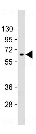 Figure 1: Anti- AFP antibody (10-6532) at 1:1000 dilution + HepG2 whole cell lysates/proteins at 20 µg per lane. Secondary Goat Anti-mouse IgG, (H+L), Peroxidase conjugated at 1/10000 dilution. Predicted band size : 69 kDa.