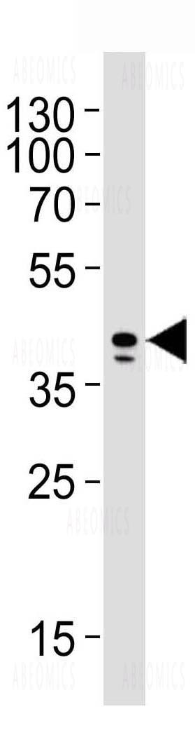 Figure 1: Western blot analysis of AIM2 Antibody (10-6601) with NCI-H292 cell line. AIM2 Antibody was diluted at 1:1000. A goat anti-mouse IgG H&L(HRP) at 1:3000 dilution was used as the secondary antibody. Lysate at 20ug.