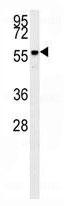 Figure 1: Western blot analysis of AKT2 antibody (10-6538) in mouse brain tissue lysates (15μg/lane).This demonstrates the AKT2 antibody detected the AKT2 protein.