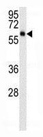 Figure 1: Western blot analysis of AKT3 antibody (10-6539) in mouse NIH-3T3 cell line lysates (15μg/lane). This demonstrates the AKT3 antibody detected the AKT3 protein.