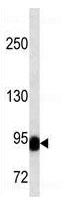 Figure 1:Western blot analysis of BCL6 Antibody (10-6564) in NCI-H292 cell line lysates (35μg/lane). This demonstrates the BCL6 antibody detected the BCL6 protein.