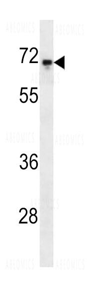 Figure 1: Western blot analysis of C-rel Antibody (10-6558) in Hela cell line lysates (35μg/lane). This demonstrates the C-rel antibody detected the C-rel protein.