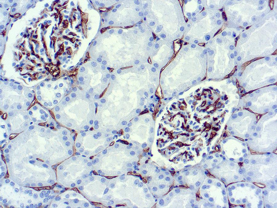 Figure 1 : Formalin fixed paraffin embedded human kidney angiosarcoma stained with CD34 antibody ( 10-11564).