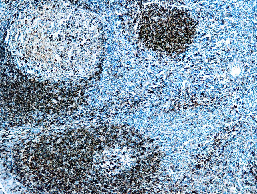 Figure 1 : Formalin fixed paraffin embedded human tonsil stained with CD79a Antigen ( 10-11533).