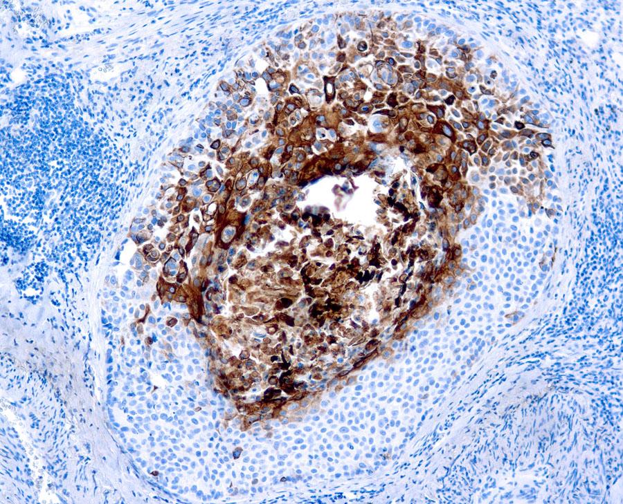 Figure 1 : Formalin fixed paraffin embedded human skin stained with Cytokeratin 17 antibody ( 10-11547).
