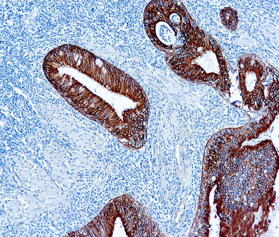 AE1/AE3 is a broad spectrum anti pan-keratin antibody cocktail, which differentiates epithelial tumors from non-epithelial tumors e.g. squamous vs. adenocarcinoma of the lung, liver carcinoma, breast cancer, and esophageal cancer.