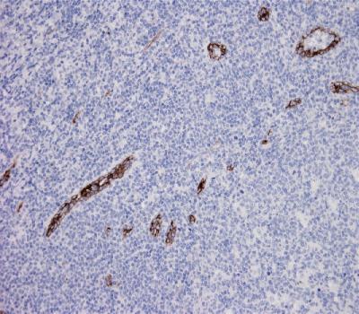 Figure-1: CD105/endoglin stained tissue sections. Image (Figure-1) tonsil, (Figure-2) urinary bladder carcinoma and (Figure-3) ductal breast carcinoma sections have been stained using CD105/endoglin antibody (Clone: BS71) with 1:200 dilution. Excellent signal to noise ratio in vascular endothelia of tumor sections.