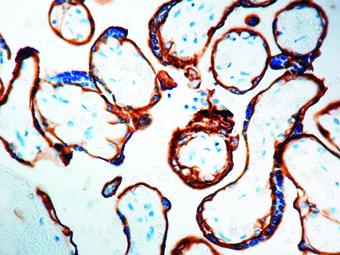 Figure 1 : Formalin fixed paraffin embedded human placenta stained with EGFR antibody ( 10-11558).