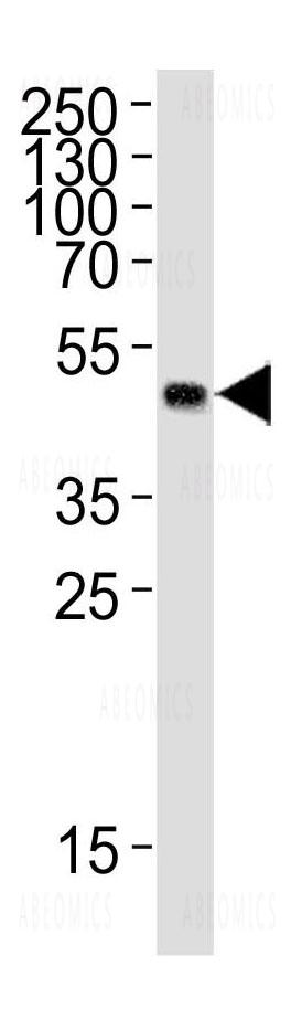 Figure 1: Western blot analysis of lysate from 12 tag recombinant protein, using GST Tag Antibody (10-6505). GST Tag Antibody was diluted at 1:1000. A goat anti-mouse IgG H&L (HRP) at 1:3000 dilution was used as the secondary antibody. Lysate at 35μg.