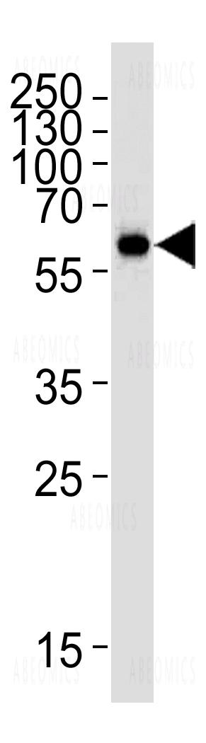 Figure 1: Western blot analysis of HDAC2 Antibody (10-6604) in Hela cell lysate (35μg/lane). This demonstrates that the HDAC2 antibody detected HDAC2 protein.