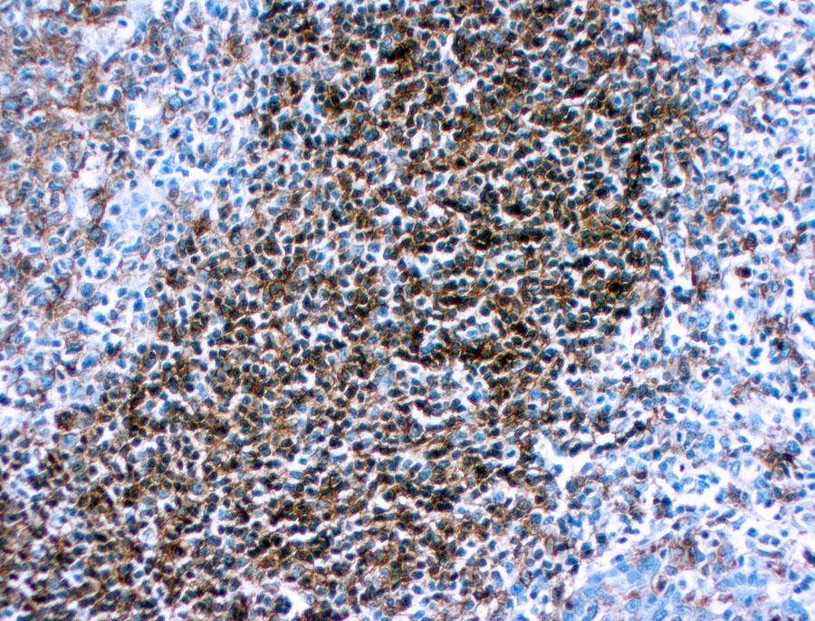 Figure 1 : Formalin fixed paraffin embedded human tonsil stained with HLA-DR antibody ( 10-11509).